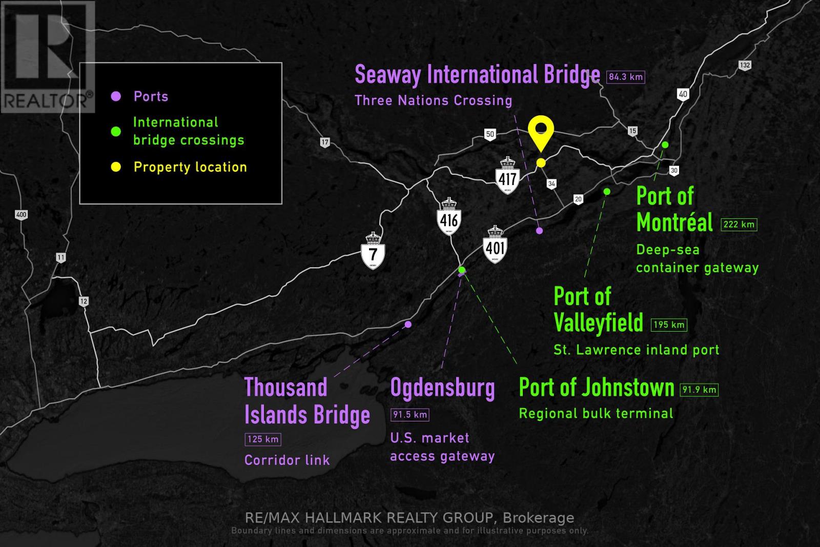 Located at 7035 County Rd 23A in Dunvegan (North Glengarry), this 20-acre industrial parcel is fully cleared raw land with broad frontage and direct exposure abutting the Hwy 417 off-ramp-delivering exceptional visibility and immediate access to the Ottawa-Montréal trunk. A clean, level canvas for yard-intensive operations, trailer staging, and phased build-to-suit shop development (subject to approvals), offering regional connectivity without metro overhead. Ideal for contractors, logistics operators, and service-industrial users seeking scalable outdoor capacity with highway-front profile. (id:31145)