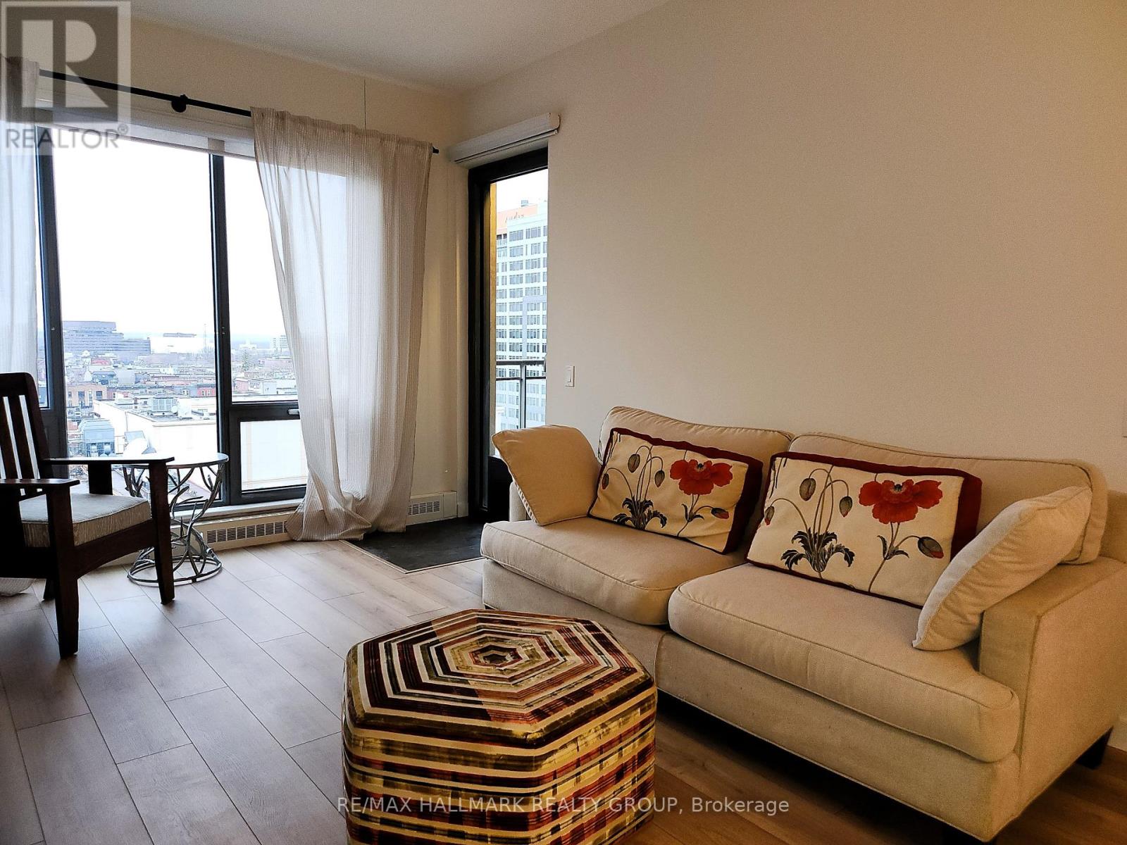 Absolutely Stunning Fully Furnished 1 Bedroom plus Den at the iconic 90 George Street, Ottawa's most prestigious and sought-after luxury condo building in the heart of the vibrant ByWard Market. Including an underground parking space. This bright and spacious fully furnished one bedroom plus den unit features an excellent free-form layout with tall ceilings. The generous primary bedroom offers ample closet space while the separate den provides a perfect flex space for a home office, guest area or additional storage. Floor-to-ceiling windows flood the unit with natural light and showcase beautiful views of the ByWard Market. The gourmet kitchen boasts high-end finishes, stainless steel appliances and a beautiful breakfast bar. Enjoy hardwood flooring throughout, in-suite laundry, a private balcony ideal for morning coffee or evening relaxation and a storage locker. Building amenities include a rooftop terrace with stunning views, an indoor pool, exercise room, concierge and more. Perfectly located in Ottawa's ByWard Market this is the epitome of lively location and chic. You are steps away from the University of Ottawa, Parliament Hill, Rideau Centre, LRT and major transportation as well as world-class restaurants and boutiques. Also available unfurnished with parking for $2450 per month. Schedule B to accompany all offers. Rental application, photo ID, credit check required. Visit today and experience luxury urban living at its finest. (id:31145)