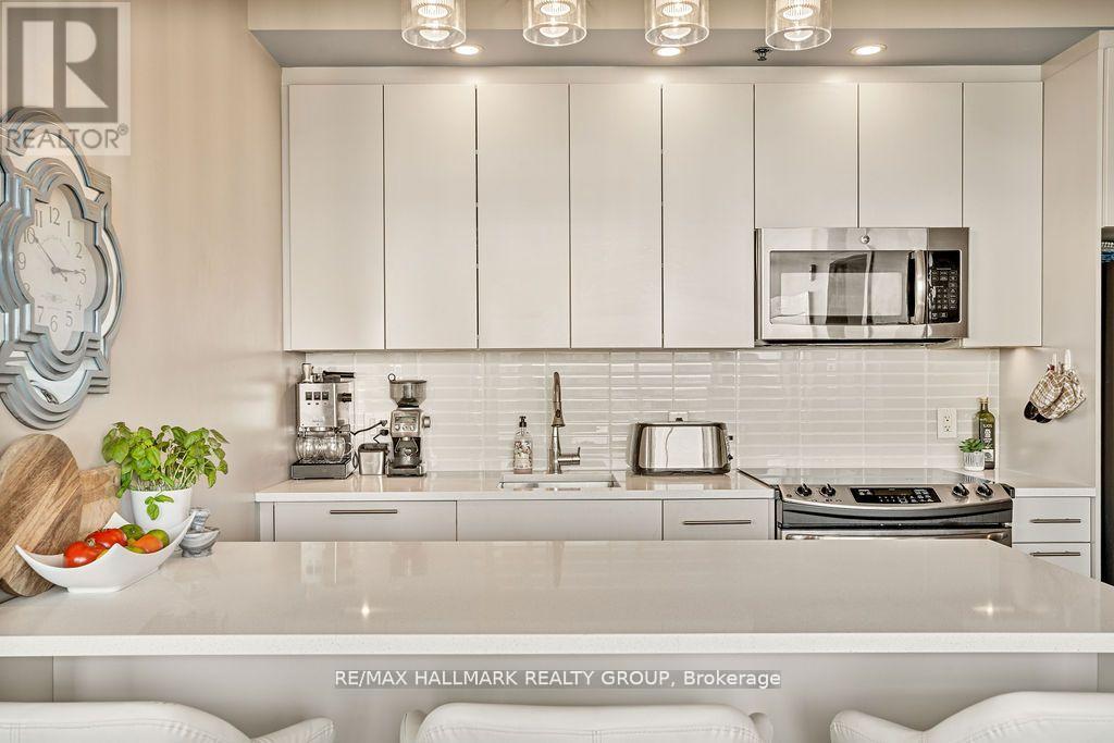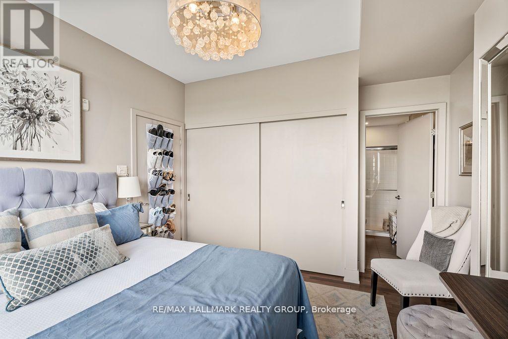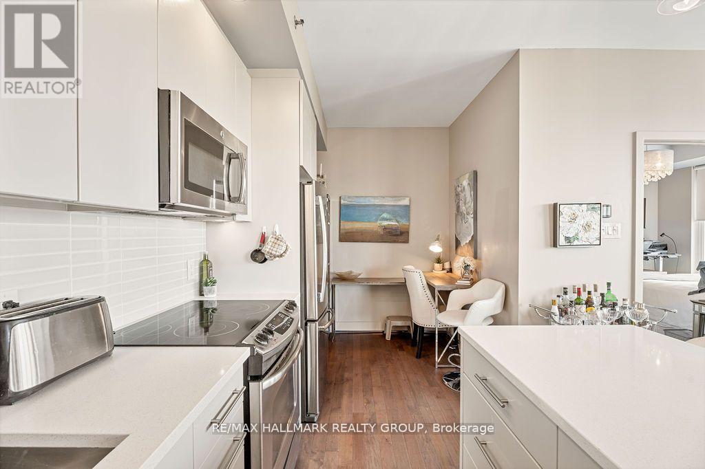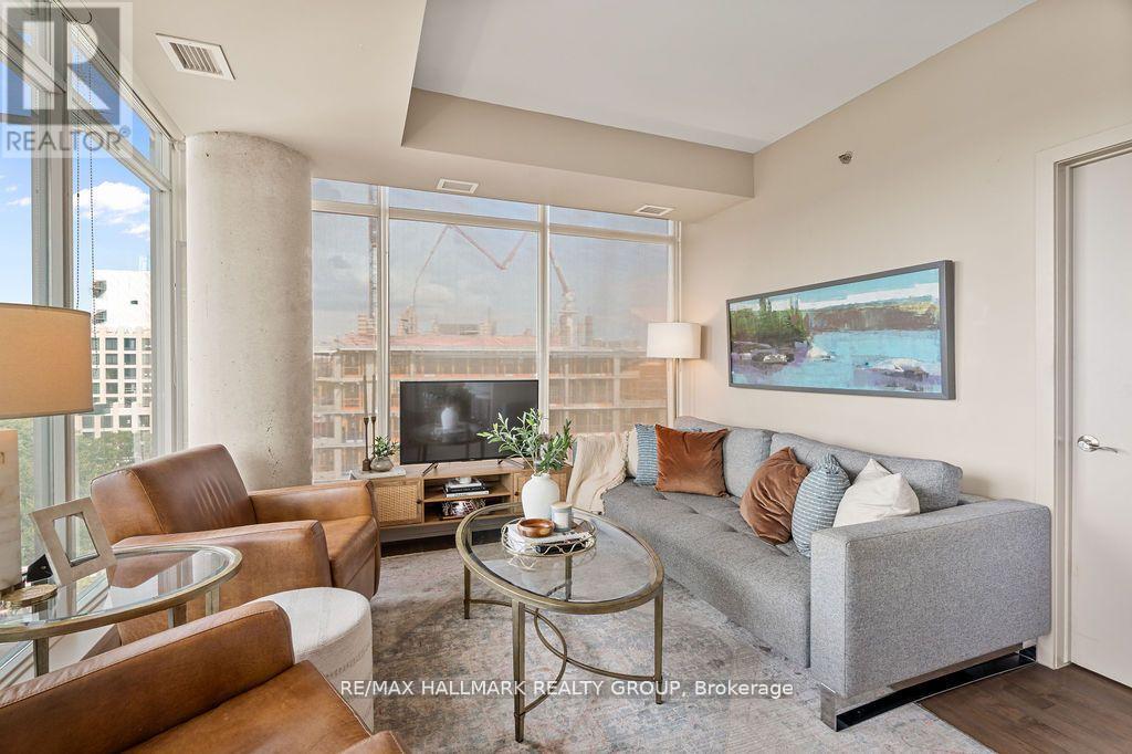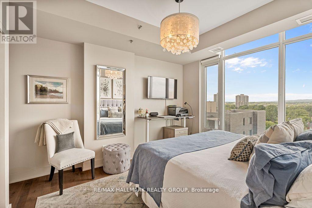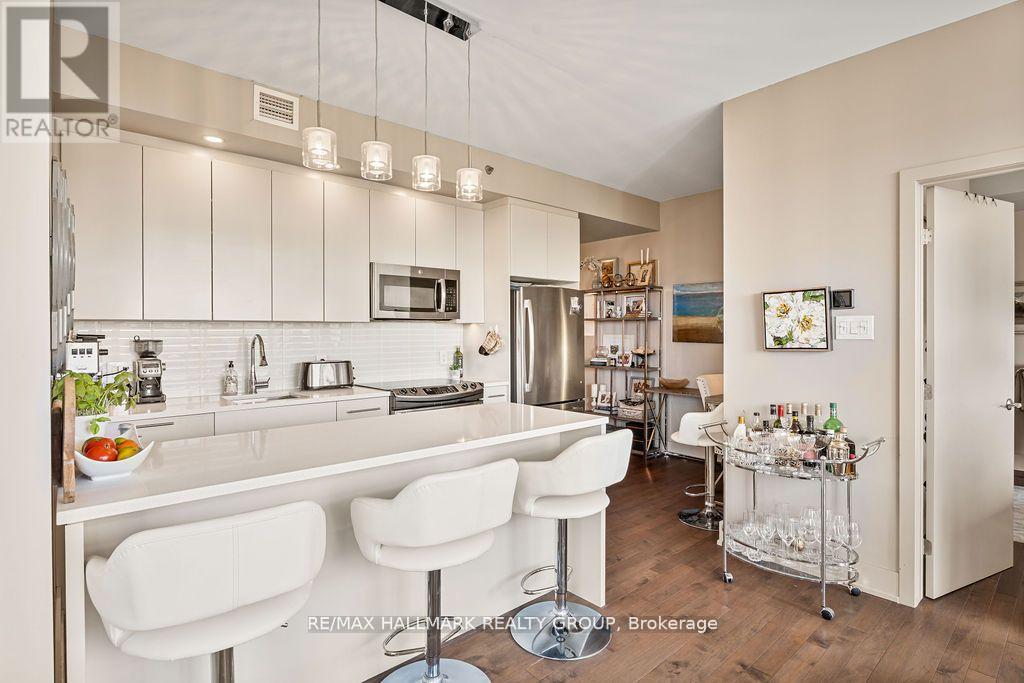 Welcome to this bright and spacious 2-bedroom, 2-bathroom corner unit in one of Westboro's most sought-after buildings - QWest! Offering just over 1,050 sq.ft. of beautifully designed living space, this condo impresses with it's open-concept layout, floor-to-ceiling windows, and modern finishes throughout. Enjoy stunning views and abundant natural light in the expansive living and dining areas, featuring hardwood flooring, high ceilings, and stylish exposed concrete pillars. The contemporary kitchen is perfect for entertaining, with a large quartz island, stainless steel appliances, and ample cabinetry. Both bedrooms have large windows - ideal for a home office set-up. The sleek bathrooms feature quartz countertops and subway tile accents; one with a glass walk-in shower, and the other with a deep soaker tub. Convenient in-unit laundry, 1 underground parking space, and a storage locker are also included. Building amenities include an impressive rooftop terrace with BBQs, a fitness centre, party rooms, and a theatre room. Located just steps from groceries, LCBO, shops, transit, and all that Westboro has to offer. Available May 1st! Tenant pays hydro, water and heat included! (id:31145)