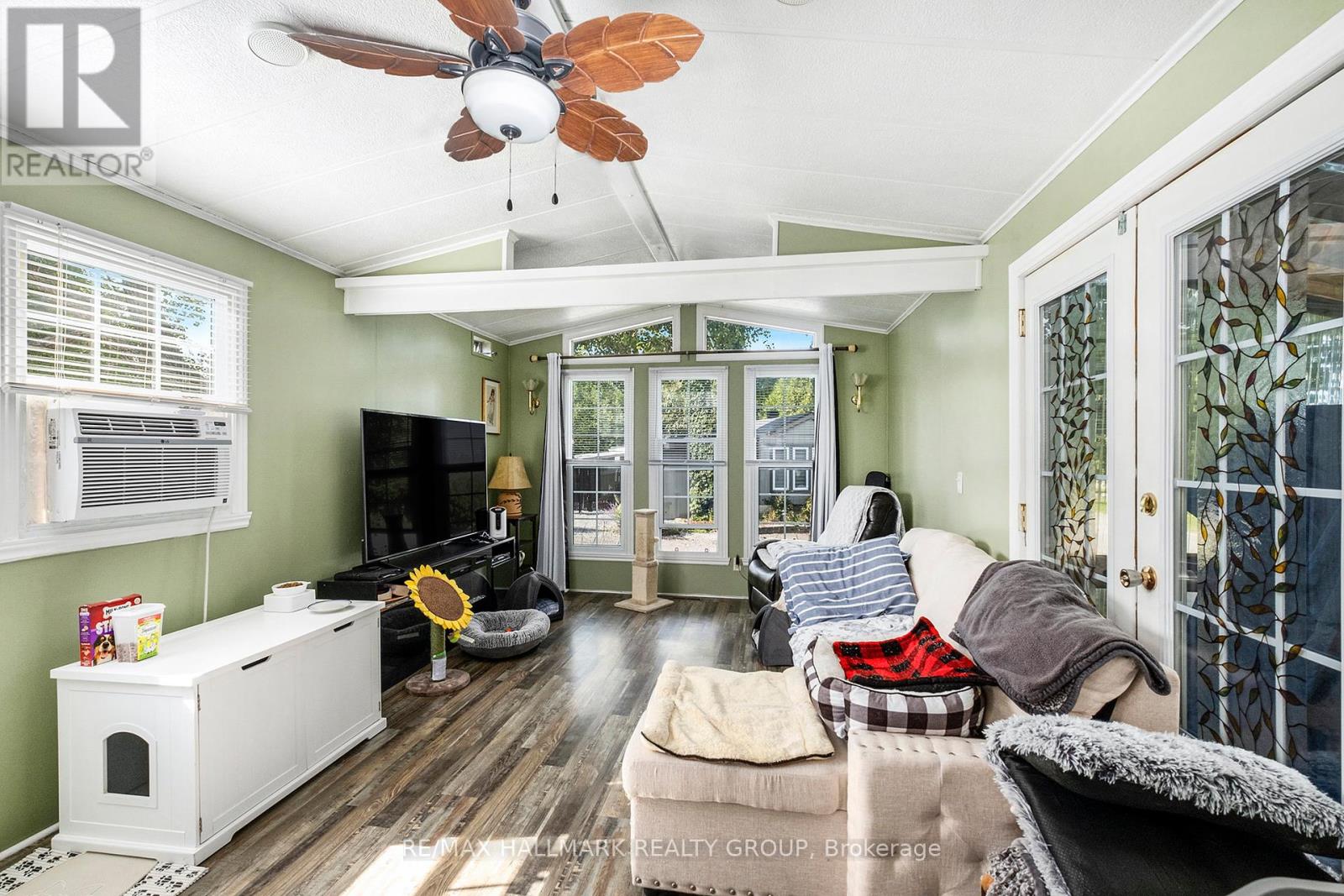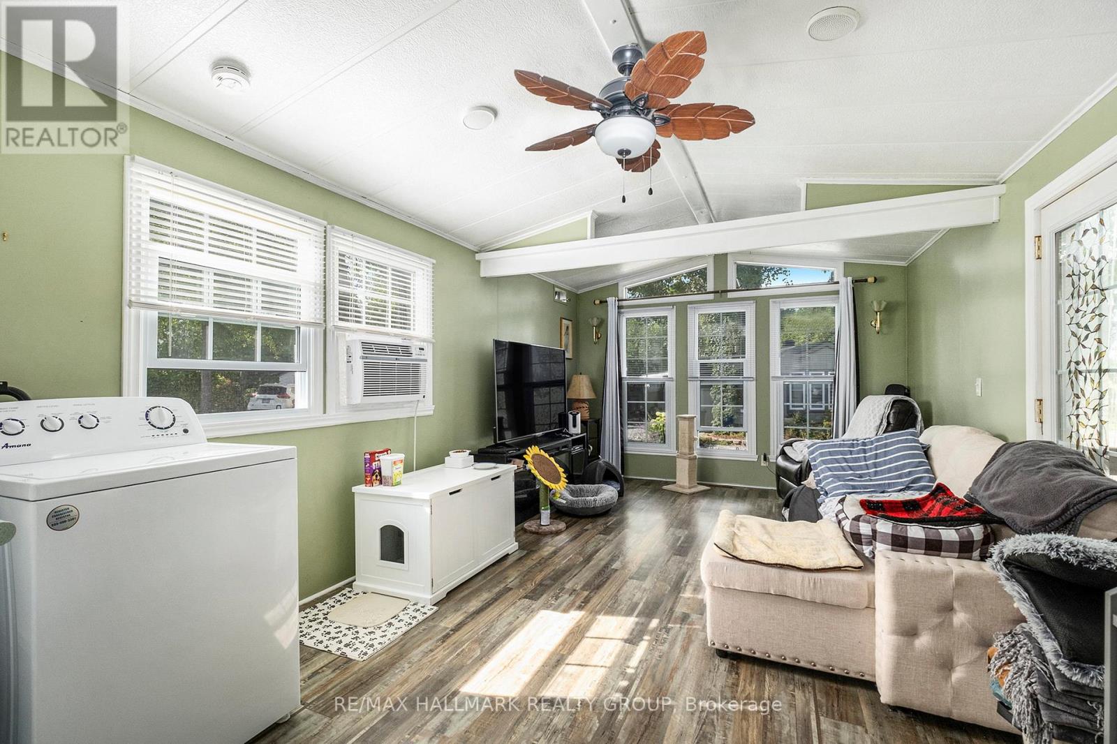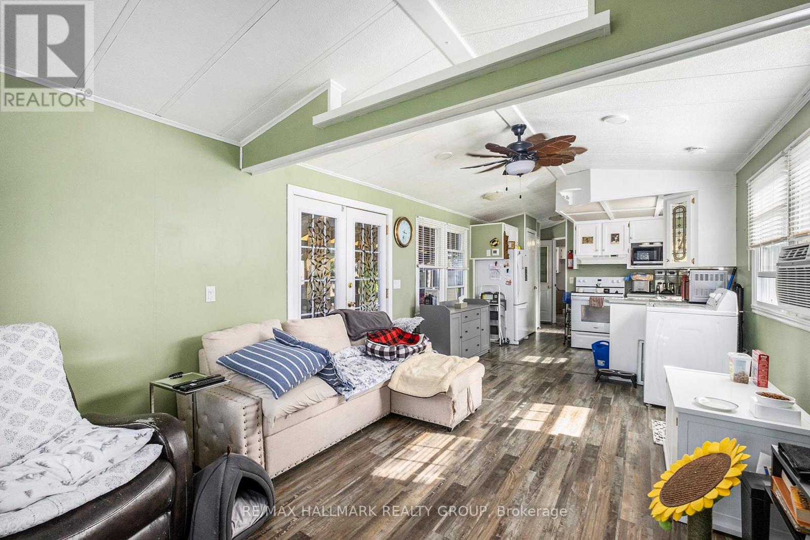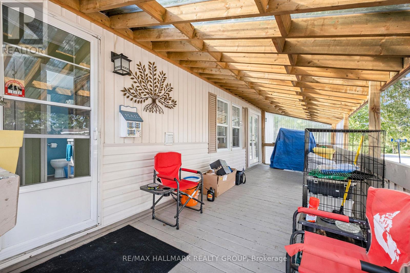 Experience serene country living in the desirable 55+ adult community of Ashton Pines, just an 8-minute drive from both Stittsville and Carleton Place. This well-maintained, move-in ready mobile home offers the perfect balance of comfort and simplicity for a relaxed retirement lifestyle. The inviting living room features double doors opening onto a large covered deck - an ideal spot to enjoy your morning coffee or entertain guests. Adjacent to the living room, the bright eat-in kitchen comes fully equipped with ample cabinetry, a double sink, and plenty of space for dining. The bedroom offers mirrored closet doors and lots of storage, while the full bathroom includes a convenient walk-in shower. Sunlight flows throughout the home, creating a warm and cheerful atmosphere. Outside, enjoy your own private yard with mature trees, beautiful landscaping, a lawn space, and a storage shed for all your extras. Residents also have access to an in-ground pool, and the pet-friendly community provides a peaceful setting in a quiet, welcoming neighbourhood. Key Details: Monthly Lot Fee Approx. $675; Water Testing & Sewer Approx. $41/Month; Annual Property Taxes Approx. $798. Park management approval required. Don't miss your chance to enjoy affordable, peaceful living in a friendly community - schedule your viewing today! (id:31145)