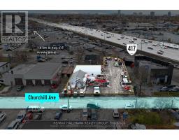 Located in west-central Ottawa, this urban industrial site pairs a 700 sq ft office with a 1,200 sq ft coverall and an efficient 12,700 sq ft yard - well suited to contractor operations, fleet staging, and service logistics. Churchill frontage delivers in-city visibility and clean truck routing, with rapid access to Hwy 417 (Queensway) east/west and core arterials for metro-wide deployment and labour reach. (id:31145)
