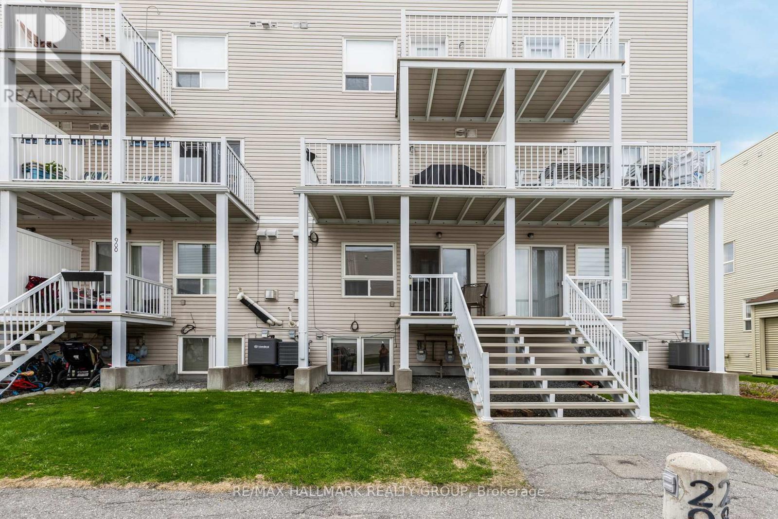 Priced to sell! Don't miss this incredible opportunity to own a charming stacked townhouse at an unbeatable value. Welcome to 896 Longfields Drive - a bright and beautifully laid out home in the heart of Barrhaven, offering comfort, space, and convenience for modern living. Step inside and you're immediately welcomed by a warm, functional kitchen that features plenty of cabinetry with rich wooden doors and a cozy eat-in area. Two large windows, nearly stretching from floor to ceiling, fill the space with natural light, making it the perfect spot to enjoy your morning coffee. Just off the kitchen is a handy powder room for guests. The main floor opens up to a spacious living and dining area, where a gas fireplace adds a cozy focal point and large windows invite sunlight to pour in throughout the day. Patio doors lead you to a nice outdoor sitting area - ideal for relaxing or entertaining on warm evenings. pen-concept layout connects the living and dining rooms seamlessly, giving the entire space a welcoming, airy feel. Head downstairs and you'll find two generously sized bedrooms. The primary bedroom features a large closet and its own ensuite bathroom, offering privacy and comfort. The second bedroom is equally inviting, with stylish pot lights, lots of room, and a bright window that brings in the sunshine. 3rd full bath is also located on this level, along with the laundry. Outside, enjoy your patio space - perfect for summer evenings or a quiet weekend retreat. Two designated parking spots and additional visitor parking offer added convenience and peace of mind. This home is located just minutes from beautiful parks, wooded trails, public schools, and is close to shopping malls, restaurants, and daily conveniences - everything you need is right at your doorstep. Whether you're a first-time buyer, investor, or looking to downsize, this unit offers a fantastic opportunity to own in one of Barrhaven's most desirable areas. *Some images have been virtually staged. (id:31145)