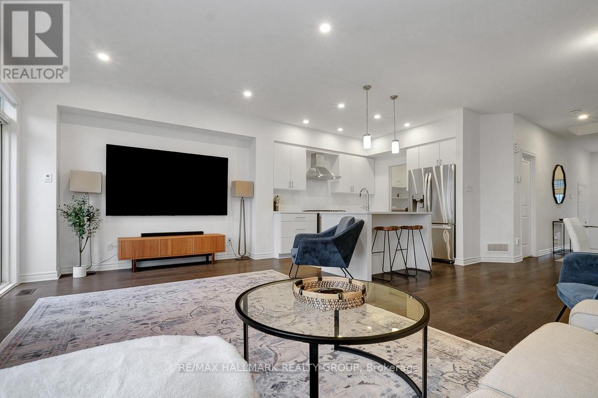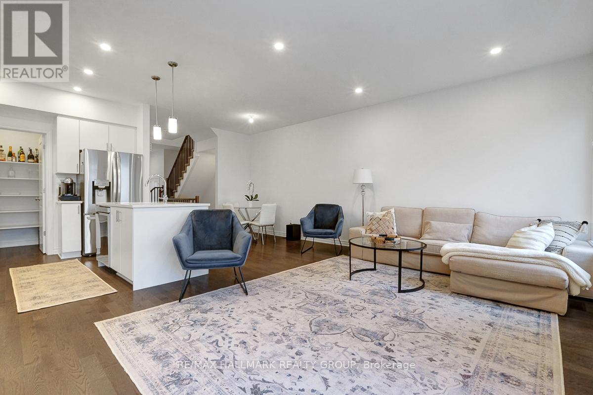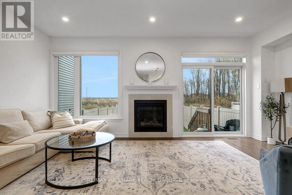 Opportunity to rent a fully furnished, turnkey, 3bedroom/3bath executive townhouse in Riverside South. 91 Canvasback Ridge features gleaming hardwood floors throughout main level. Open concept living space including kitchen, dining room and living room. Kitchen includes stainless steel appliances including nat-gas stove, quartz counters, plenty of cabinet space including walk-in pantry, breakfast bar w/ pendant lighting. Pot lights throughout kitchen, living room. Cozy gas fireplace. Neutral tones throughout. Easy access to backyard with no rear neighbours. Second level has primary bedroom with large walk-in-closet and 3pc ensuite. Two other good-sized bedrooms, laundry area, and main bathroom complete the upper level. Fully finished basement rec room. Plenty of storage. Do not miss this opportunity. Close to parks. A short jaunt to Manotick shops and cafés. 4mins drive to Limebank North LRT Station. Ideal for Diplomatic Mission looking for a multi-year lease. Call today! (id:31145)