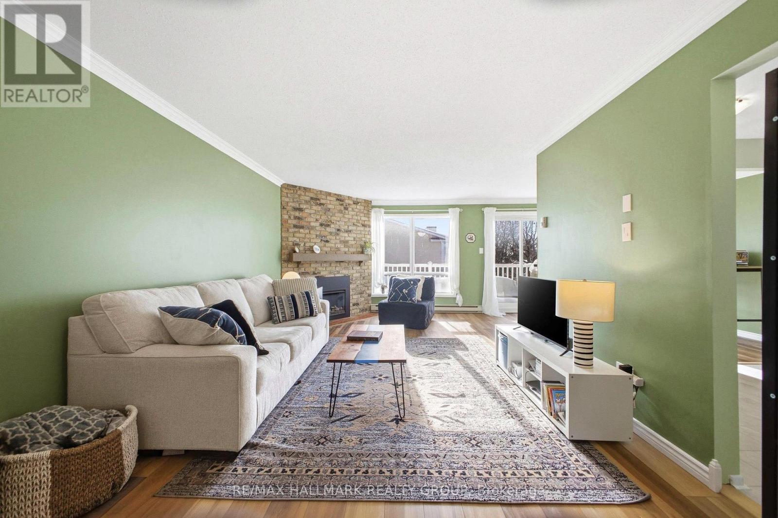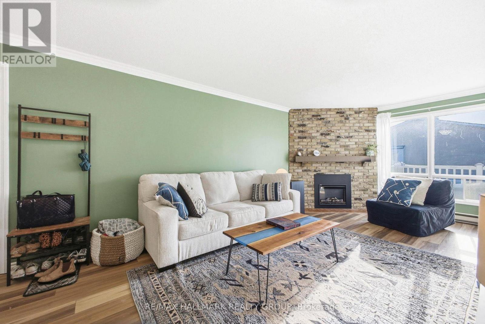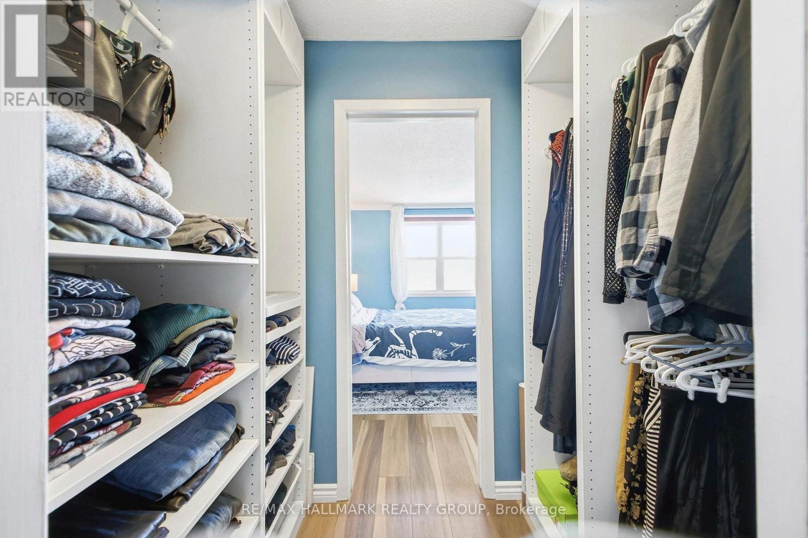 Welcome to this beautifully updated 2-bedroom, 2-bath second-floor end unit in the heart of Kanata's sought-after Bridlewood community. This move-in-ready home has been thoughtfully refreshed throughout, featuring fresh paint across the bedrooms, main living area, kitchen and ceilings, complemented by elegant crown moulding. The bright, functional kitchen was upgraded with new tile flooring (2026) and a stylish bar-top addition, perfect for casual dining and entertaining. The open-concept living and dining areas are warmed by a cozy fireplace and lead to a large private balcony overlooking quiet treed pathways and the community's outdoor inground pool, an ideal spot to unwind. The spacious primary bedroom offers a private ensuite and custom PAX storage, providing excellent organization and added functionality. A full 4-piece main bath, in-unit laundry, and ample storage complete the interior. Enjoy the convenience of one private garage parking space plus two surface parking spaces, along with plenty of visitor parking. Located just steps from Bridlewood Plaza, public transit, parks, walking paths, recreation facilities, schools, and everyday shopping, this home offers outstanding walkability and easy access to everything Kanata has to offer. A turnkey opportunity in a quiet, well-managed community, perfect for first time buyers or downsizers looking to move in and enjoy immediately. (id:31145)