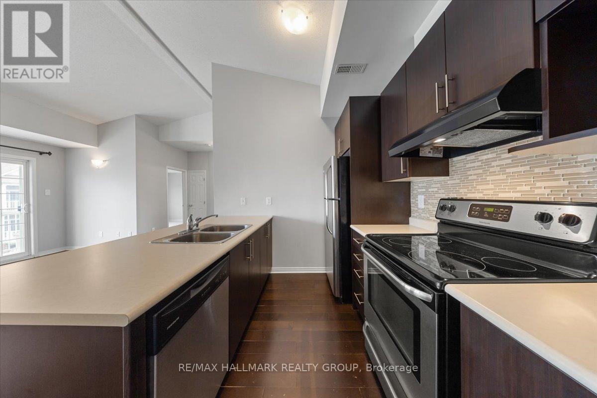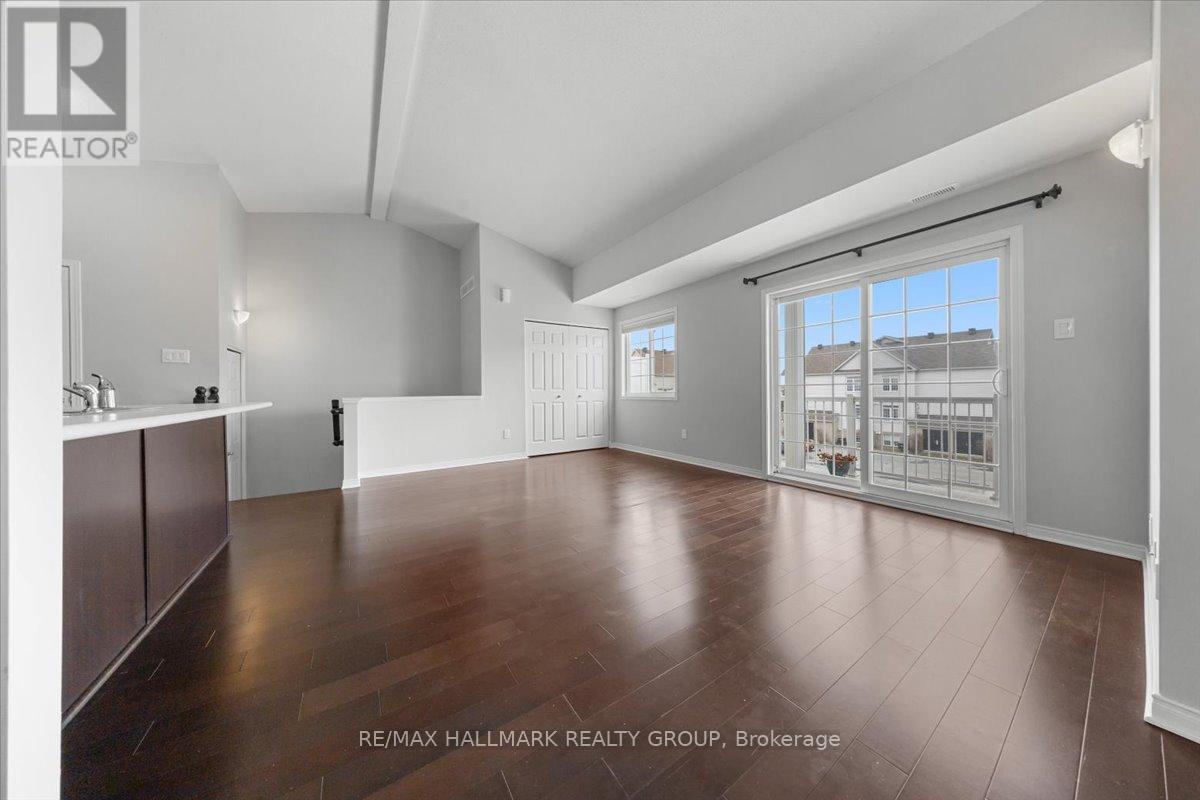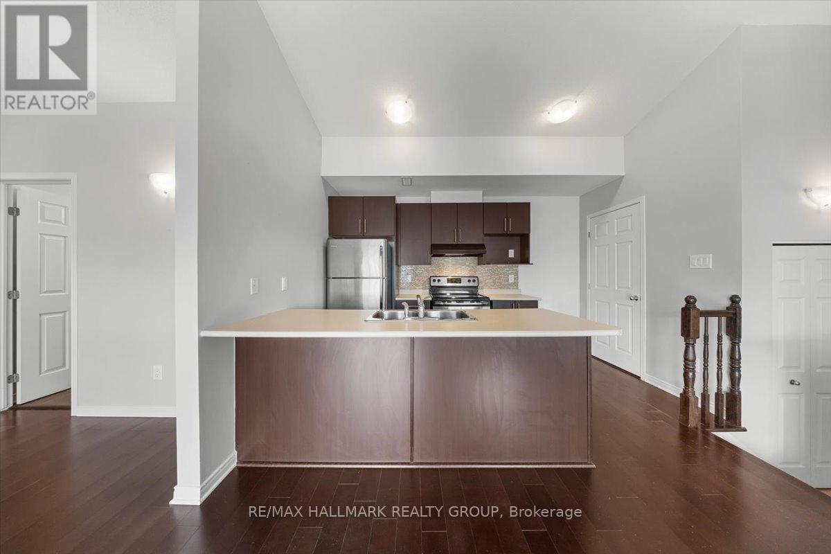 THE PERFECT BLEND OF LOCATION AND CONVENIENCE! Discover this bright and spacious 2-bedroom, 1-bathroom upper-level condo in Kanata's sought-after Trailwest community. This MOVE-IN-READY home features an open-concept layout with soaring vaulted ceilings, fresh neutral paint, and new luxury carpet. The modern kitchen is equipped with stainless steel appliances, plenty of cabinetry for all your essentials, and a breakfast bar that opens to an expansive main living area where large windows allow the main living space to be flooded with warm, natural light. Step through the living area to a large private balcony, perfect for relaxing on a warm summer evening or enjoying your morning coffee. Both bedrooms are generously sized with large closets, complemented by a convenient linen closet for additional storage and a full main bathroom. Convenient in-unit laundry adjacent to the kitchen. Perfect for FIRST-TIME HOMEBUYERS, INVESTORS or those looking for MAINTENANCE FREE LIVING. Ideally located just steps from public transit, parks and minutes to Highway 417, restaurants and top schools. (id:31145)