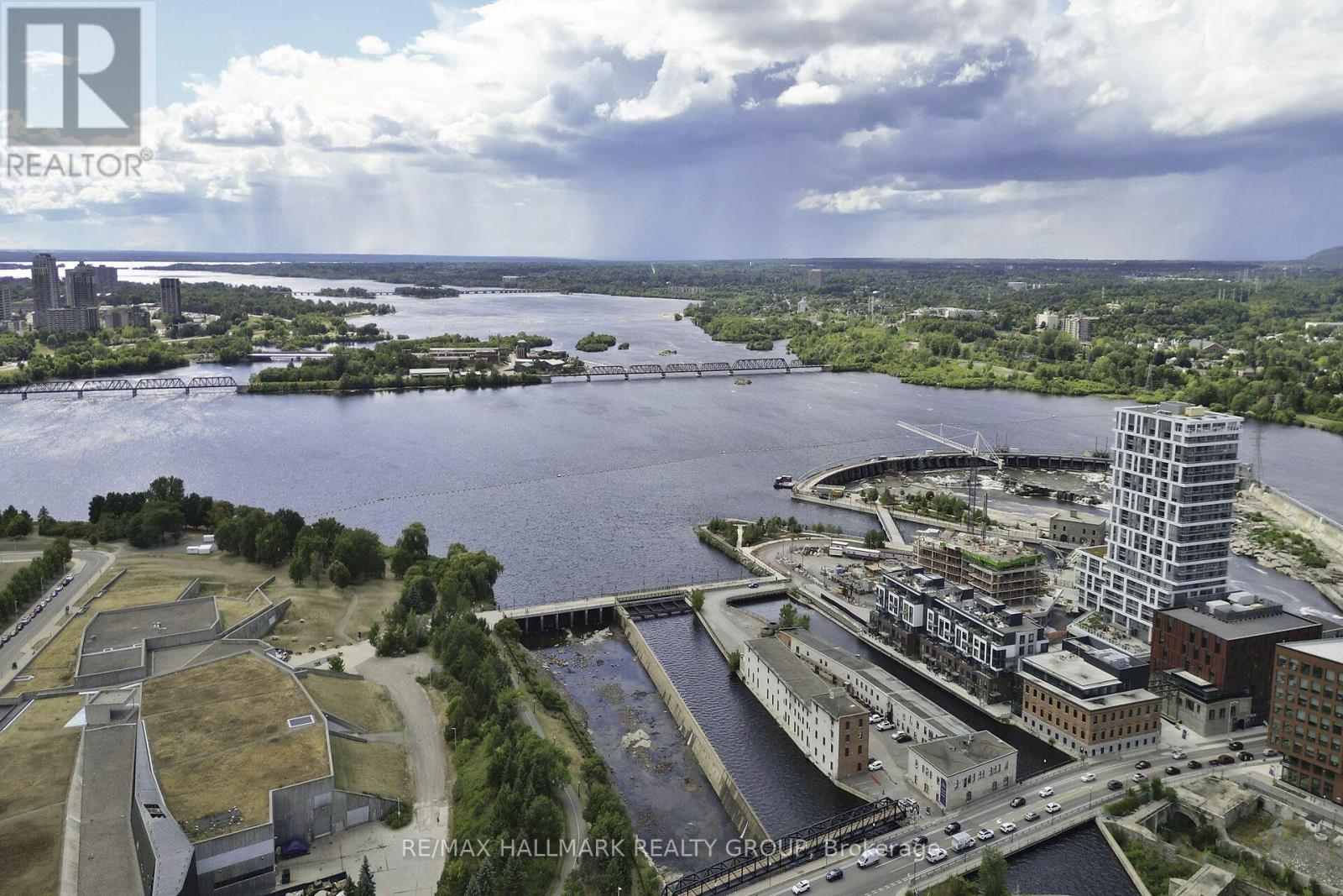 Location, Scenic River Views, and Unmatched Convenience! This penthouse offers the best of Ottawa living steps away from Parliament Hill, the Ottawa Public Library, the Canadian War Museum, and the exciting Bluesfest grounds. Excellent transportation options, including the Pimisi LRT station, are just around the corner.Directly beside the Ottawa Pumphouse Kayak Pavilion, residents can enjoy front-row views of paddlers on the river as well as a unique connection to the waterfront lifestyle. The buildings shared grounds feature a beautifully landscaped garden and fountain, creating a serene escape right outside your door.Enjoy top-tier building amenities, including a rooftop terrace with barbecues, a fitness centre, a recreation room, and an indoor pool. This penthouse also comes with a dedicated indoor parking space and a storage locker.This stunning top-floor penthouse boasts 982 sq. ft. of living space in the vibrant LeBreton Flats community. The open-concept layout features two bedrooms, one bathroom, and in-unit laundry. The living and dining areas showcase hardwood floors and floor-to-ceiling windows, flooding the space with natural light and showcasing sweeping river and city views. The primary bedroom includes a walk-in closet and a four-piece ensuite.The contemporary kitchen offers a large sink, pot drawers, and ample cupboard and counter space. Open to the living room, its perfect for entertaining.An active lifestyle awaits with cycling, jogging, and walking trails right along the river, plus easy access to nature paths and green spaces. Dont miss the opportunity to invest in this rapidly growing neighbourhood!Some photos are virtually staged. (id:31145)