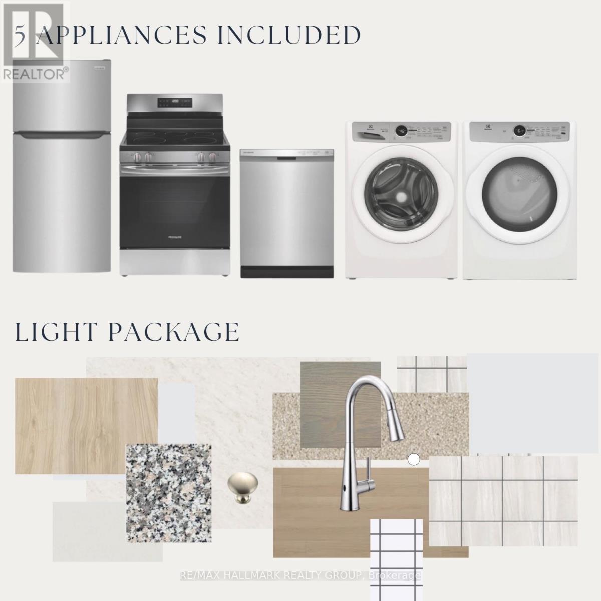 Dishwasher, Dryer, Stove, Washer, Refrigerator |